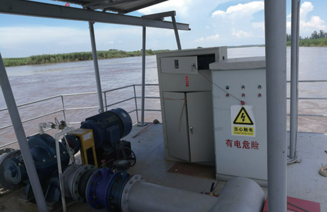 浮船式取水泵系統(tǒng)主要組成:泵船、取水泵組、配電及控制設(shè)備、輸水管路閥門和棧橋等。