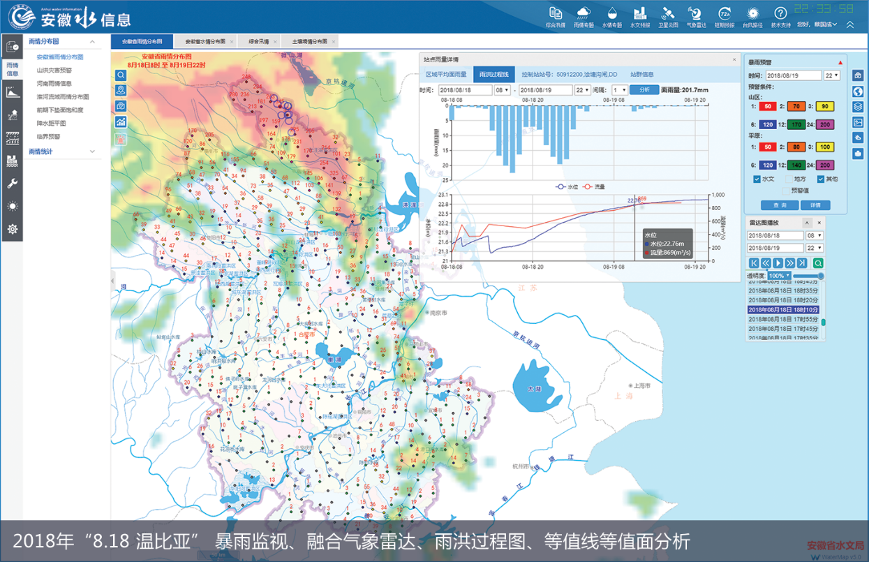 系統深掘業務主鏈,提煉下墊面飽和度算法結合實時雨情,快速鎖定山洪易發焦點,為防汛抗 旱和山洪災害的預警提供最及時的信息。
