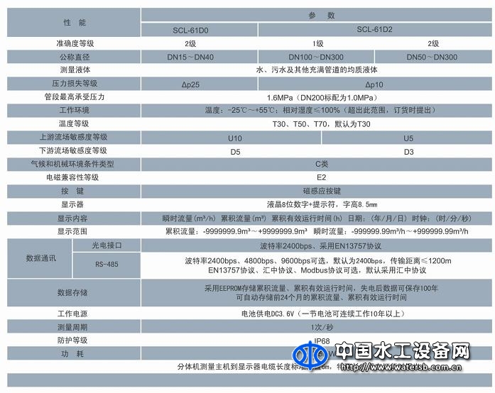 (1)SCL-61D2超聲水表采用速度差法,專為城市供水管道及分戶 計量總表設計,同時適用于多種工業現場;