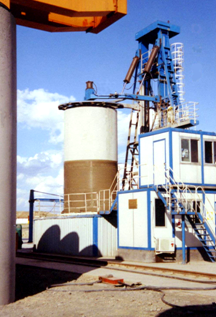 設備由回轉工作臺、頂蓋、提升系統、鋼絲導向滑輪組、應力發生裝置、雙筒鋼絲排繞機組、鋼絲盤、3噸回轉式起重機、導向輪組、主塔排架及操作平臺、水泥凈漿噴射裝置、空氣管路系統、操作控制室、電氣控制系統等部件組成。
