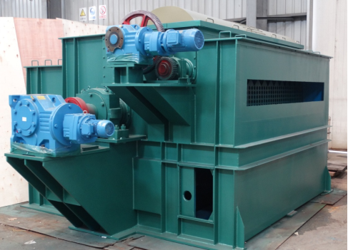 稀土磁盤分離凈化技術(shù)是專注于冶金過程中的連鑄和軋鋼的濁環(huán)水處理過程,該設(shè)備利用稀土永磁材料的高強磁能積,通過稀土磁盤的聚磁組合,實現(xiàn)工作空間的高磁場強度和高磁場梯度,產(chǎn)生的磁力是重力的600多倍。在該磁場力作用下,連鑄、熱軋濁循環(huán)水中的鐵磁性物質(zhì)微粒和通過藥磁絮凝吸附在鐵磁性物質(zhì)微粒上面的非磁性物質(zhì)微粒和乳化油,可克服流體阻力和重力等機械外力,產(chǎn)生快速定向運動,吸附在稀土磁盤表面,從而將廢水中的懸浮物和油吸附分離出來,再通過隔磁卸渣裝置將稀土磁盤表面的吸附物卸下,刨入螺旋槽,經(jīng)輸渣裝置輸出,實現(xiàn)連鑄、熱軋濁循環(huán)水的凈化和循環(huán)使用。后續(xù)采用與之配套的磁力壓榨脫水機,最終渣含水率≤35%,從而可省去濃縮池,降低投資。