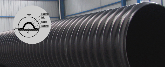 鋼帶增強(qiáng)聚乙烯(PE)螺旋波紋管以高密度聚乙烯(PE)為基體,用表面涂敷粘接樹脂的鋼帶成型為波形作為主要支撐結(jié)構(gòu),并與聚乙烯材料纏繞復(fù)合成整體的雙壁螺旋波紋管。