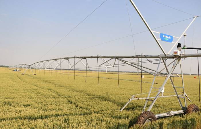 6、與大型圓形機比較:地塊利用率98%;但設備購買成本較高,多為柴油發電機供電,運行和管理成本較高;水電配套設施較復雜,灌溉周期時間長。