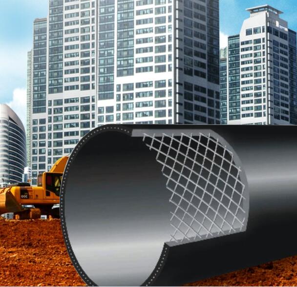 PE鋼絲網骨架塑料復合管是以高強度鋼絲左右螺旋成型的網狀骨架為增強體。以高密度聚乙烯(HDPE)為基體,并用高性能的粘接樹脂層將鋼絲網骨架與內外層高密度聚乙烯緊密地連接在一起。