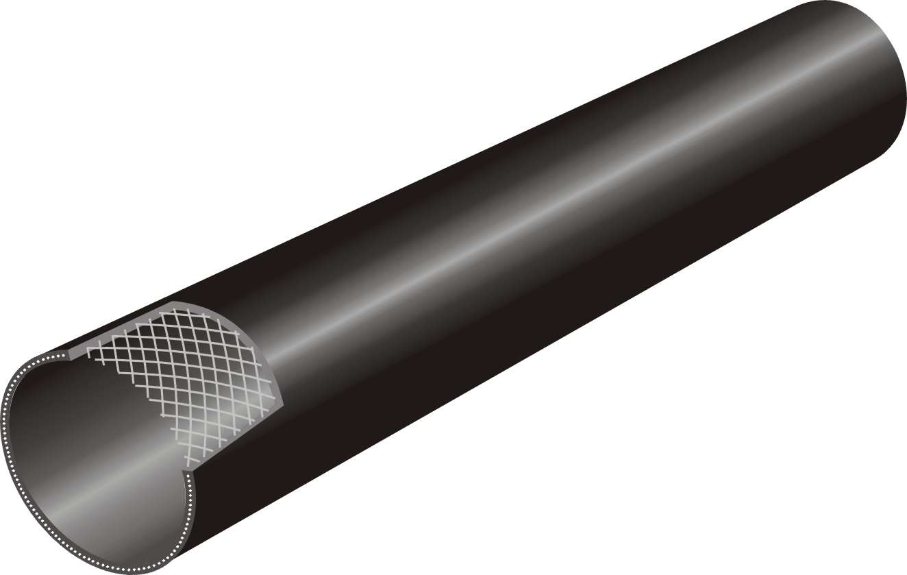 海揚牌鋼絲網骨架聚乙烯(PE)復合管是以高強度鋼絲左右螺旋纏繞成型的網狀骨架為增強體,以高密度聚乙烯(HDPE)為基體,并用高性能的粘接樹脂層將鋼絲網骨架與內外層高密度聚乙烯緊密連接在一起。該粘接樹脂是一種高性能粘接材料,屬于HDPE改性材料,與HDPE 在加熱條件下能完全熔融為一體, 同時,其極性鍵與鋼有極強的粘接性能, 由于粘接樹脂的使用, 成功地解決了鋼
