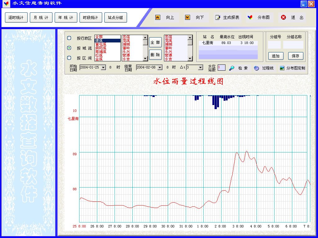 c 可方便快捷查詢每個站點逐時水位/雨量數據及相關圖表,可進行水位、雨量數據統計和整編。